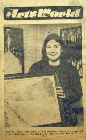 A photograph from the Durham Advertiser newspaper showing me at my first exhibition at the Kemble Gallery, Durham City, March 1977